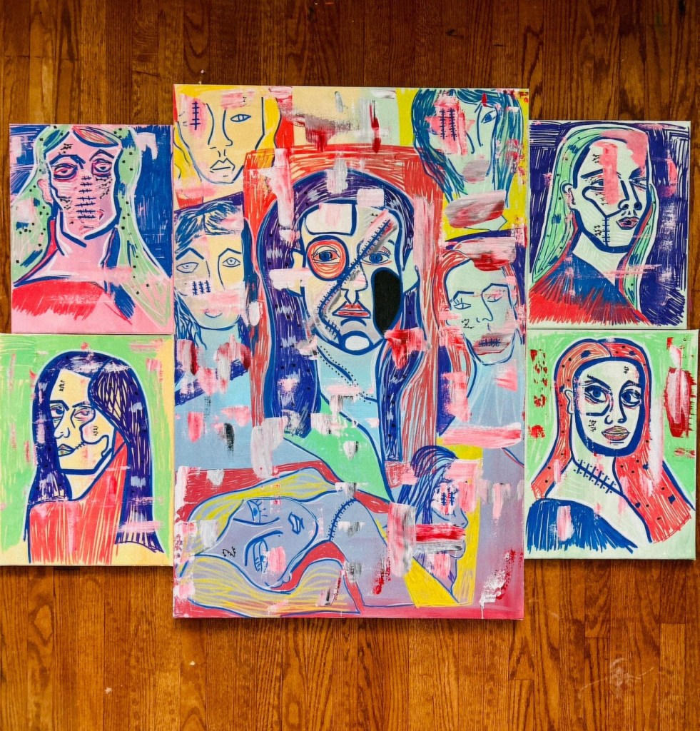 These women represent those of us with physical, mental and emotional scars. Women glue, stitch and duct tape themselves back together.